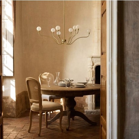Pour illuminer ces moments en famille, ajoutez-y la suspension dorée PICA qui se mariera parfaitement avec le style de la table. Ses 8 globes suspendus sur des tiges en métal doré tamiseront la pièce d’une lumière douce.