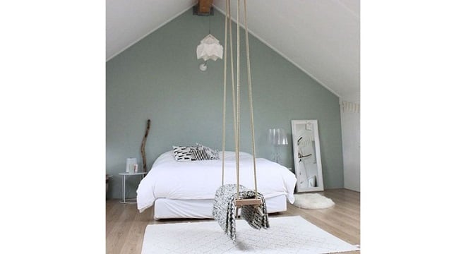 Si vous trouvez qu’un mur entier en vert-de-gris fait « too much », faites le choix d'une tête de lit dans cette couleur. Ainsi, vous parviendrez à l’intégrer dans la décoration, sans qu’elle alourdisse l'ensemble.