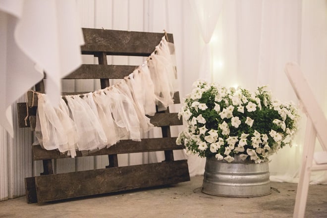 La guirlande de fanions au-dessus de la piste de danse est classique, mais elle est toujours efficace. Elle apporte un aspect vintage à l’événement tout en mettant en valeur toutes les décorations en bois et en papier. Encore plus intéressante, cette astuce peut être réalisée en DIY à moindre coût.