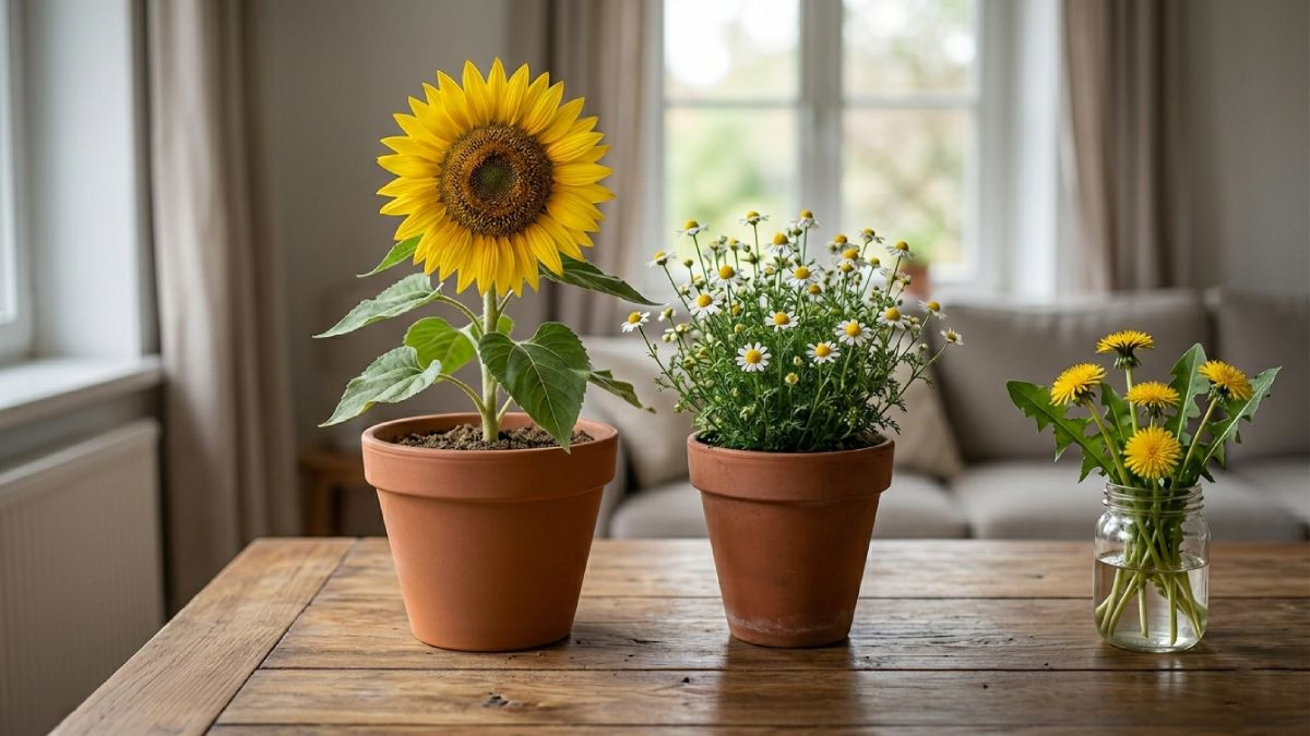 La camomille et le pissenlit, fréquemment ramenés du jardin pour des infusions ou des bouquets champêtres, posent le même problème. Leurs feuillages touffus et leurs fleurs offrent autant de planques aux punaises présentes dans la nature, qui se retrouvent ensuite installées tranquillement dans votre salon. À noter que ces plantes ne sont pas dangereuses en soi : c'est leur passage de l'extérieur vers l'intérieur sans inspection préalable qui pose problème.