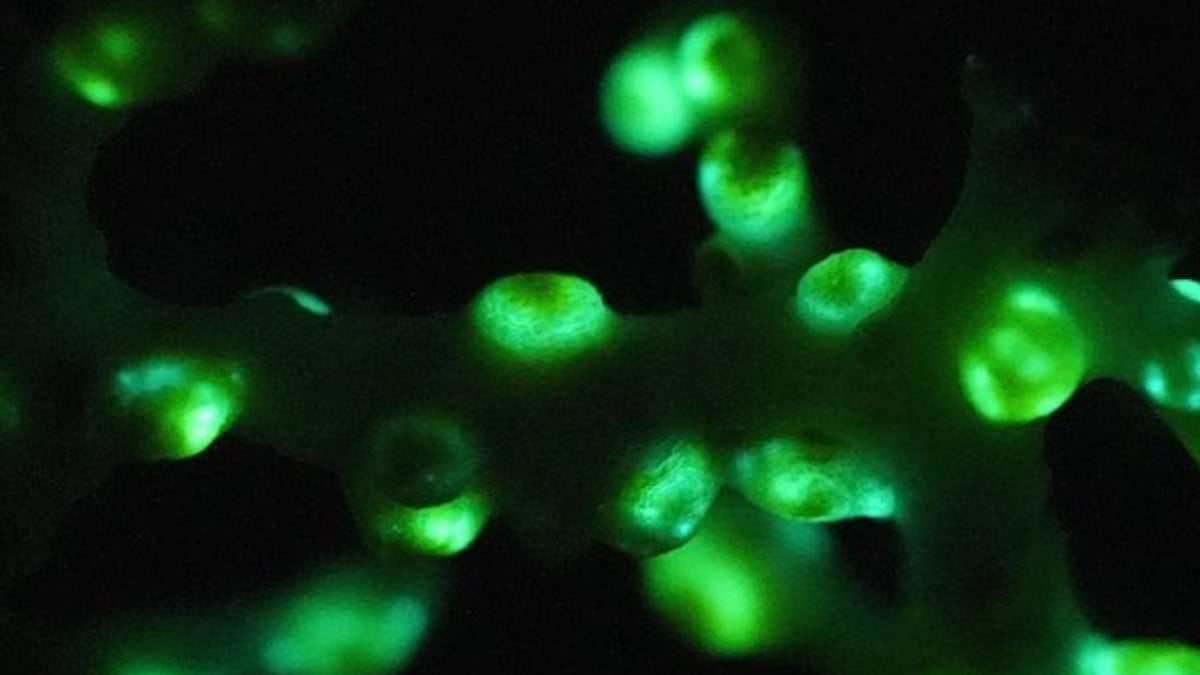 Sur celles-ci vivait un zoanthaire, un organisme marin proche des coraux et des anémones de mer, jusqu’ici inconnu, Corallizoanthus aureus, dont les polypes se sont illuminés en vert au contact de la pièce de l’engin, détaille le site.