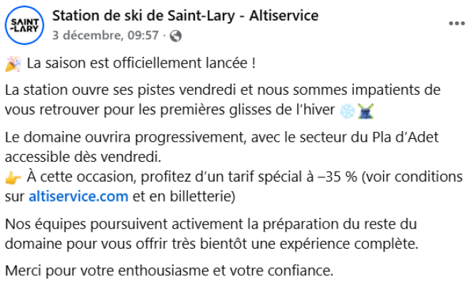Crédit photo : Station de ski de Saint-Lary - Altiservice / Facebook