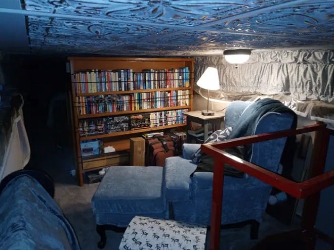 Le travail de rénovation et d’aménagement fut compliqué, mais le résultat en vaut la chandelle. Toute la vie du couple tient à l’intérieur de cette maison mobile : une salle à manger, une bibliothèque, une salle de bain avec jacuzzi, une kitchenette munie d’un four à micro-ondes et d’un frigo, un coin télé avec accès aux plateformes de streaming, un bureau, un garage et une chambre à coucher, le tout réparti sur deux étages reliés par un escalier en colimaçon.