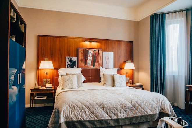 Depuis sa grande réorganisation, l’Hôtel propose de séjourner dans l’une des 104 nouvelles chambres (dont 7 Junior Suites et une Suite historique). Le West a connu de grands travaux de réaménagement récemment, sans faire table rase du passé, sous la direction de l’architecte-décorateur Bruno Borrione qui a “restauré avec soin, sans trahir son âme d’origine”.