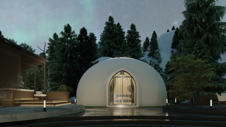 Chaque dôme de 65 mètres carrés est fabriqué à partir de béton recyclé et de bois récupéré. Grâce à leur forme aérodynamique, les dômes nécessitent 50 % d'énergie en moins pour le chauffage et la climatisation que les structures conventionnelles. Cet aspect écologique permet de profiter de vacances au grand air sans avoir à culpabiliser d’un potentiel impact négatif du lodge sur l’environnement.