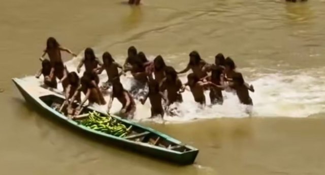 Sur ces images, on voit des membres de la tribu sur une plage. Ceux-ci observent en direction de Paul Rosolie et de son équipe. Si les autochtones sont armés de leur arcs, ils ne semblent pas vouloir les utiliser contre les visiteurs.