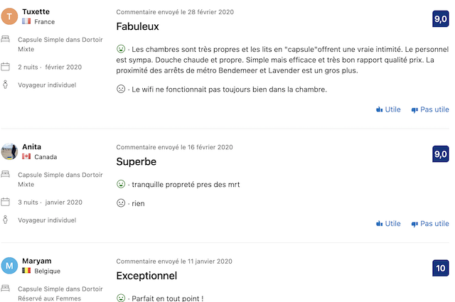 Avis repérés sur Booking.com